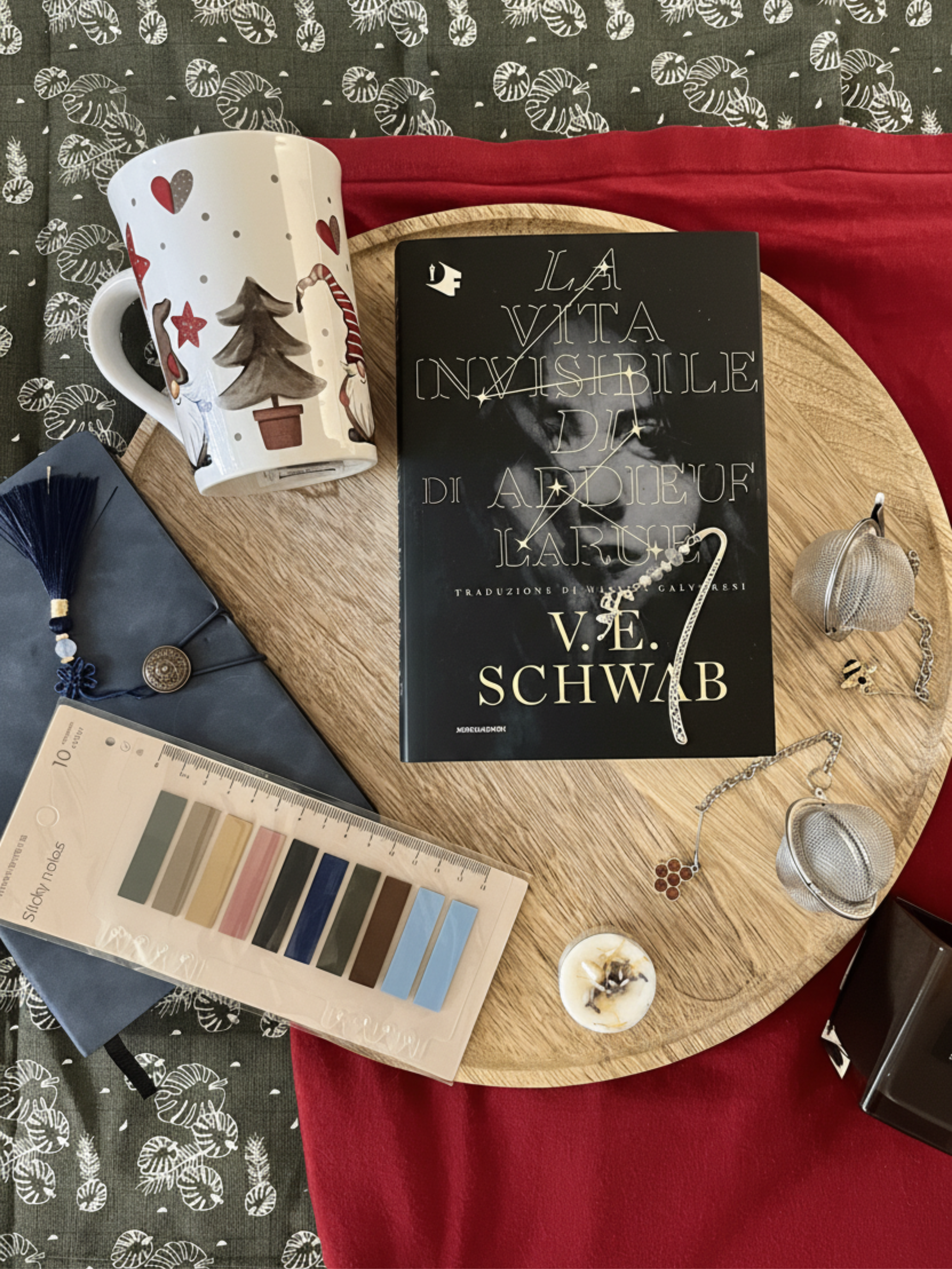 All’interno, una selezione curata di tè e un infusore per accompagnare i momenti di quiete, una tazza letteraria per le pause lente, una candela profumata per creare atmosfera e sticker segnapagina per custodire le frasi più intense.